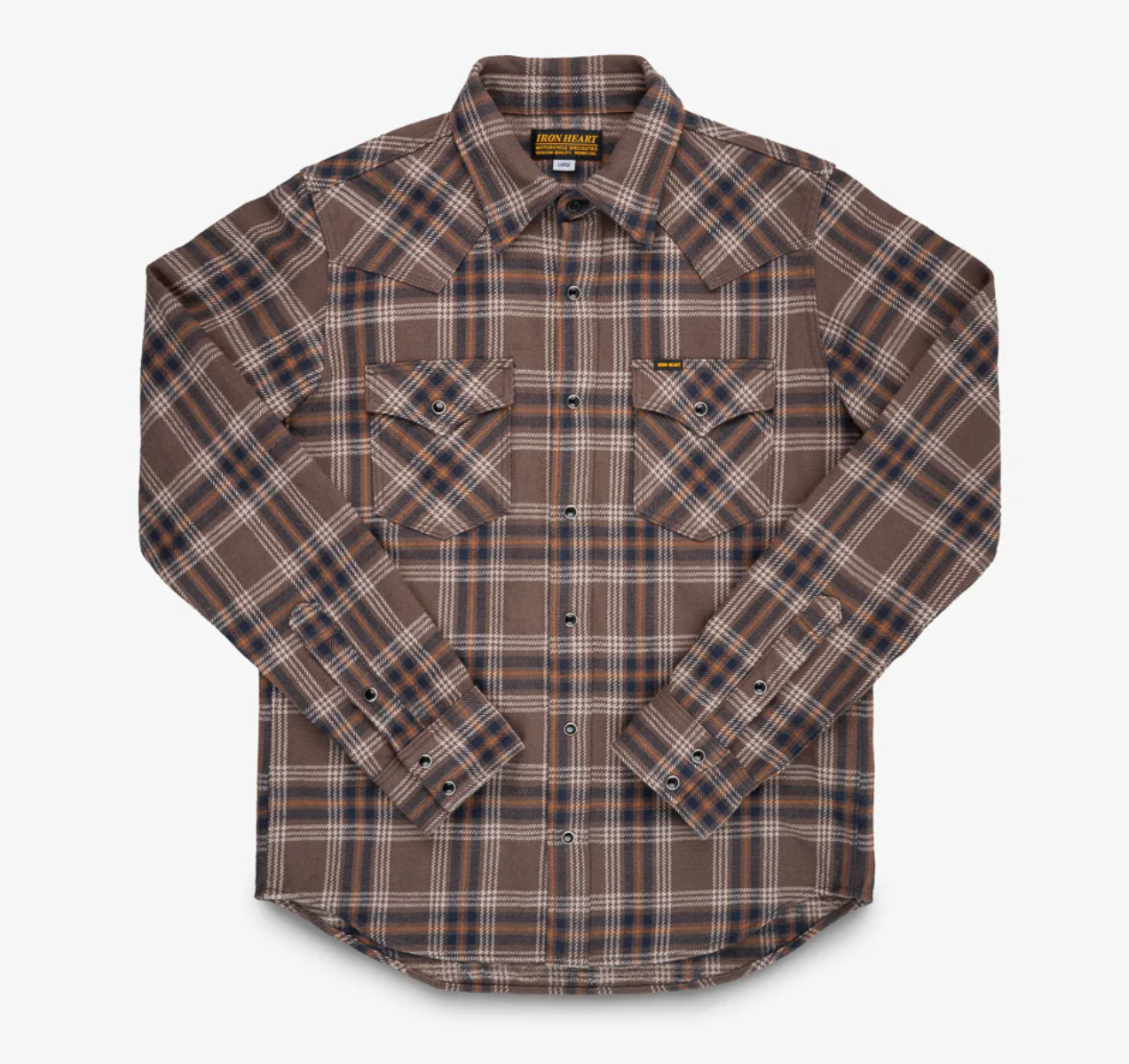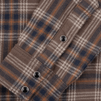 Substantial, warm and windproof—our 12oz slubby heavy flannel (SHF) shirts share all the same characteristics that our signature ultra heavy flannels are renowned for. However, as the fabric is woven using slub yarn cotton, this pronounces the texture and creates a much more uneven hand when compared to our traditional flannels. While the face of the fabric is packed full of character and rugged charm, we still double brush the reverse to ensure a very soft, cosy flannel shirt. Seen here in our western cut with a classic brown check.